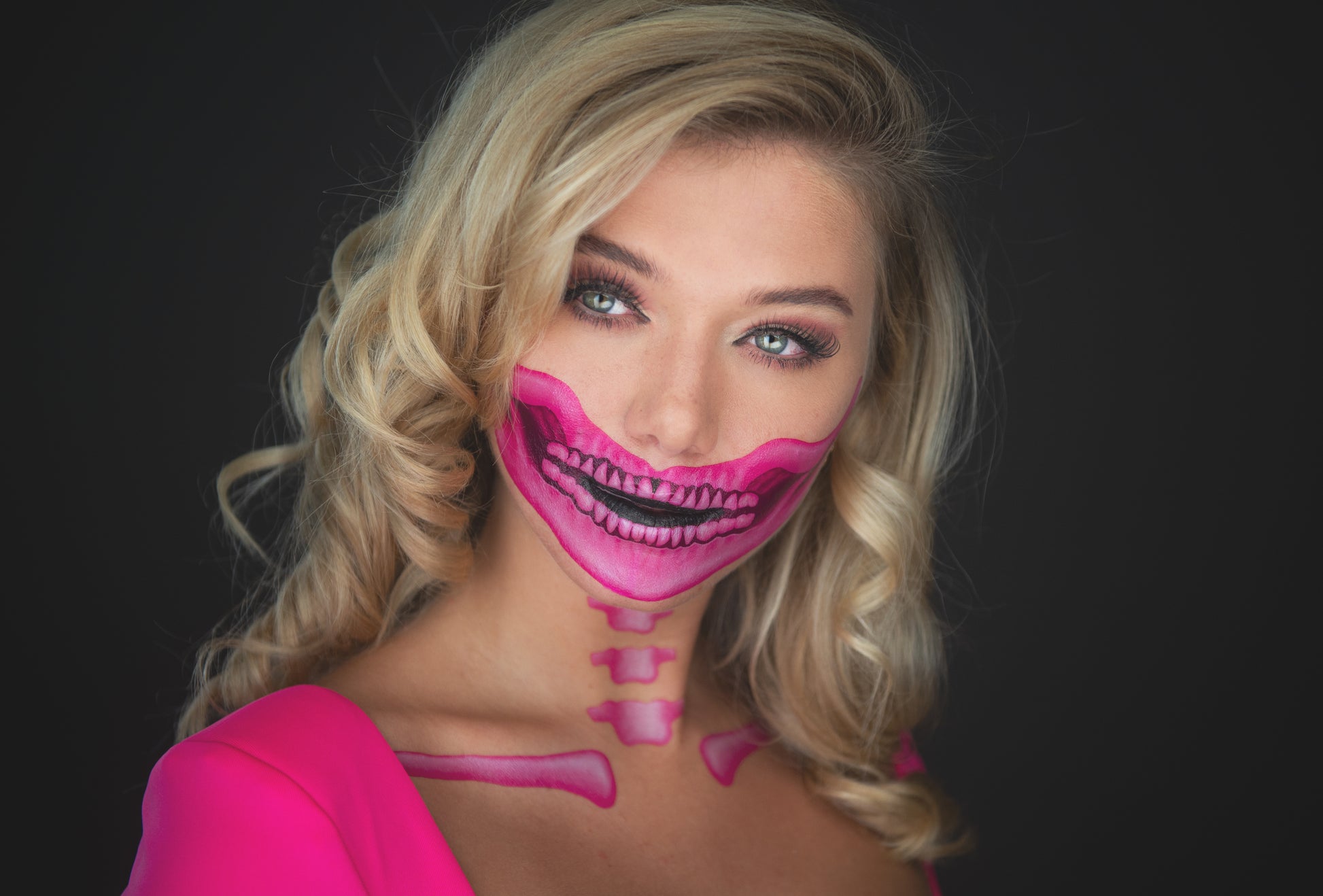 2 x Fantastic Plastic pink Skull Face, Temporary Tattoo, Halloween Costume for Women and Men, Adult